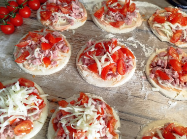 Сверху все посыпьте натертым на терке сыром. Запекайте пиццы около 15-20 минут. Время приготовления может отличаться. Подробнее о духовках и пергаменте для выпечки читайте по ссылкам ниже.