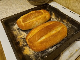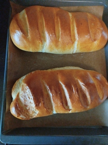 Простое базовое тесто, хлеб получается вкусным, "настоящим, как в магазине, но лучше", как сказала моя подруга. Раньше не знала, что батоны нужно скручивать рулетом, сделала по рецепту и приятно удивилась результату! У нас любят румяную корочку, поэтому держу в духовке чуть дольше.