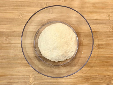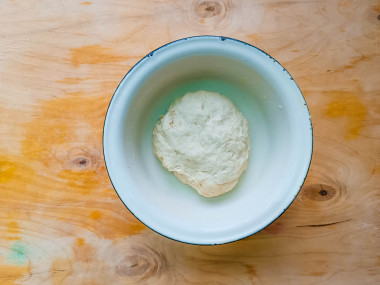 Удобнее будет месить, выложив его на доску. Готовое тесто соберите в шар и положите в миску.