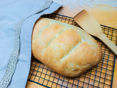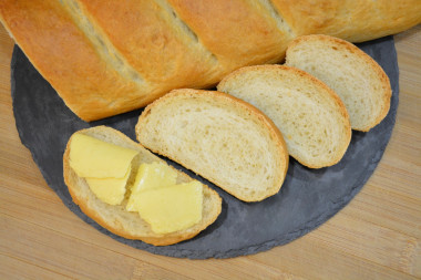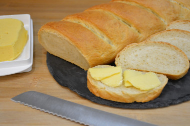 Нанесите тонкий слой масла сразу после того, как батон вынут из духовки, пока он ещё тёплый. Это придаст мягкий блеск корочке.
