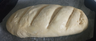 Пробовала смазывать хлеб водой, делала надрезы. Сейчас ничем не смазываю, ставлю выпекаться как есть. Порадовало что в рецепте немного сахара.