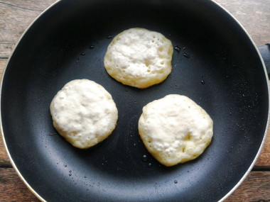 В сковороде на огне чуть ниже среднего разогрейте немного растительного масла. Ложкой выложите тесто и сформируйте небольшие круглые оладушки. Жарьте с двух сторон до золотистой корочки. Как выбрать сковороду и растительное масло для жарки читайте в статьях на эту тему. Ссылки в конце рецепта.
