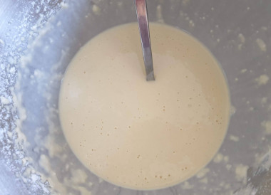 , в этот раз захотелось более тонких и нежных оладьев. Поэтому муки положила чуть меньше.