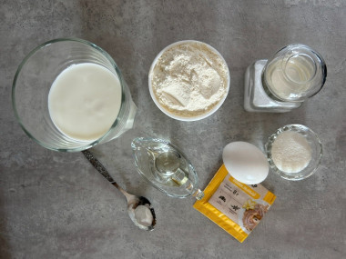 Захотелось приготовить что-то быстрое к чаю, решила приготовить оладьи на скорую руку без дрожжей. Для приготовления кефир брала 2,7 % жирности, 1 крупное яйцо, соль, сахар, муку и ванильный сахар для аромата.