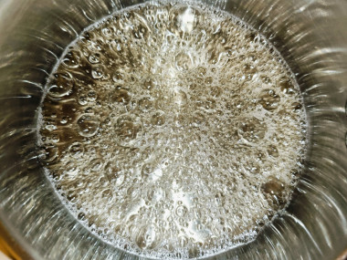 Сироп начал потихоньку закипать минут через 5. Через 10 минут от начала было уже активное кипение, как на фото. Золотистый цвет появился сначала с краю через 20 минут. Подержала сотейник ещё 3 минуты на огне, пока весь сироп не окрасился в нужный цвет. Затем добавила сливки, разогретые до 94 градусов. При этом образовалась высокая пена. На этом этапе соус необходимо перемешивать и сливки вливать потихоньку, в рецепте это указано. Морскую соль я заменила на поваренную и положила уже после выключения плиты. На результат это не повлияло по-моему. Соль растворилась, соус однородный. По вкусу соус похож на ириску, но не такой приторно сладкий. Сначала будто чувствуется сладкий сливочный вкус, затем соленый на фоне сладкого. После холодильника хорошо загустел. Так что для начинки пирожного или торта соотношение ингредиентов идеально. Спасибо за рецепт!