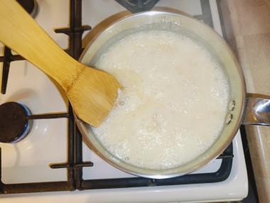 Готовим карамель ещё около двух минут не забывая в процессе перемешивать, после чего снимаем сотейник с плиты.