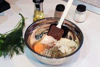 Куриное яйцо вымойте под проточной водой и вбейте в миску. Посолите и поперчите фарш по вкусу. Так как степень восприятия вкусов у каждого индивидуальная, всегда добавляйте специи, пряности и приправы, ориентируясь на свои предпочтения! Если используете готовые смеси специй, прочитайте состав. Часто в них уже содержится соль. А о том, какие специи идеально подойдут к разным блюдам из рыбы, читайте в статье по ссылке ниже.