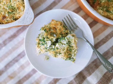 Подавайте запеканку в теплом или остывшем виде. По желанию можно посыпать мелко нарубленной свежей зеленью. Приятного аппетита!