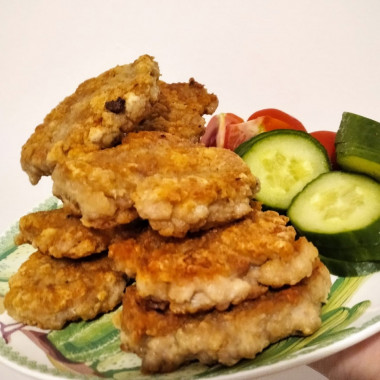 У меня вечные проблемы с обваливанием в муке, но здесь все прошло на удивление быстро и легко, котлетки будто сами формируются. С размером сильно не разгонялась, сделала небольшие, в сочности они ничуть не потеряли.