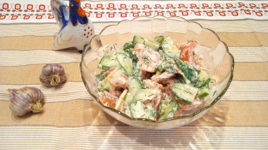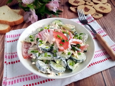 Даже не ожидала, что сочетание овощей с сыром и чесноком окажется таким удачным! Очень вкусный салат, освежающий и сочный!