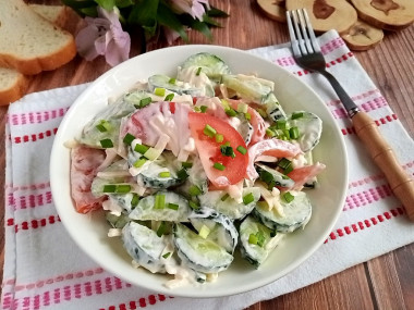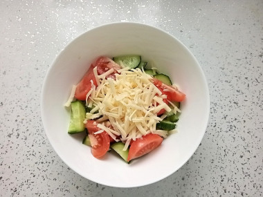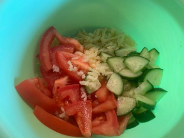 Привычный овощной салат, оказывается, можно приготовить по-новому, добавив всего лишь один ингредиент – сыр. Нашла на сайте такой рецепт, казалось бы, что тут такого, а в сочетании с сыром и чесноком салат заиграл новыми, острыми, пикантными нотками. Думаю, мужчины оценят такие добавки с сочными овощами. Салат и вкусный, и полезный, мы готовили к шашлыку, то, что надо, отлично зашел.