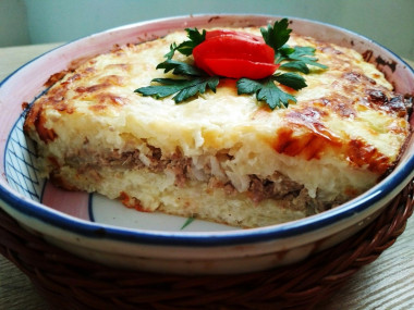 Интересный рецепт, запомню. Спасибо автору. Обычно пеку запеканку с сыром и фаршем вот по такому рецепту из картофельного пюре.