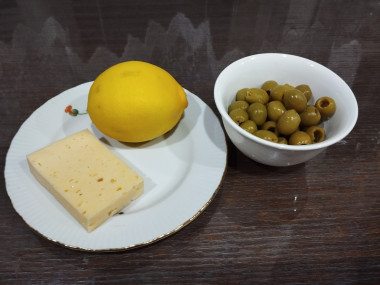 Чтобы приготовить эту замечательную закуску, выберете правильно сыр. С оливками и лимоном лучше всего сочетается твердый сыр, поэтому возьмите его. Будет еще лучше, если сыр будет поострее на вкус, но можете использовать и более сладко-молочный. Сыр нарежьте на кубики, но не слишком большие (примерно 1 см. х 1 см., но не больше 1,5 см.), потому как оливки сами по себе небольшие. Так и красивее будет, и сыр не будет забивать вкус остальных ингредиентов.