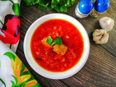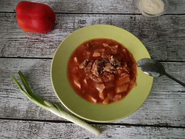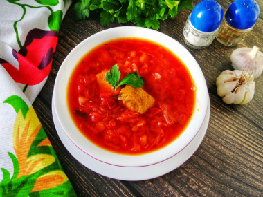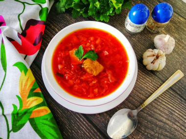Борщ с томатной пастой - это именно то блюдо, которое становится еще вкуснее на второй день, когда хорошенько настоится. Аромат у супа потрясающий, а вкус такой, что руки сами тянутся за добавкой. Я в полнейшем восторге от рецепта!!