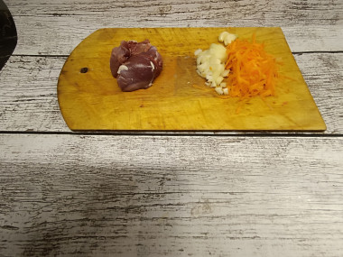Подготовьте все необходимые ингредиенты. Мясной набор может быть любым по вашему вкусу. Говядину можете заменить на свинину, курицу или индейку. Но учтите, что время приготовления и калорийность изменятся. Томатную пасту в этом рецепте можно заменить на помидоры в собственном соку, свежие помидоры или кетчуп. Пряности можете использовать любые по вкусу. Я добавила паприку.