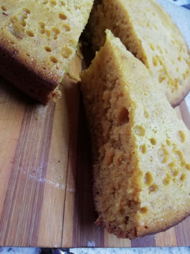 Переложите тесто в чашу мультиварки и поставьте выпекаться на режиме "Пирог" или "Выпечка" (в зависимости от модели мультиварки). Тыквенное тесто можно выпекать и в духовке, для этого переложите тесто в разъемную форму и поставьте в разогретую до 180 градусов духовку на 40 минут. Время запекания может отличаться, все зависит от Вашей духовки. Проверьте готовность тыквенного бисквита при помощи зубочистки.