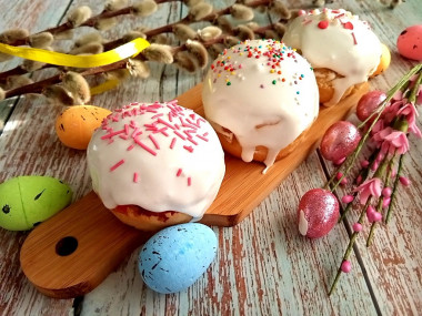 Куличи, украшенные помазкой из белков, очень аккуратно и аппетитно выглядят. И на вкус такая помазка очень приятная.