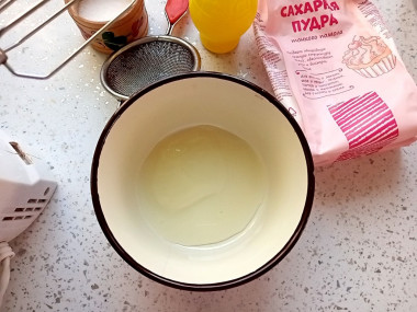 Возьмите глубокую миску с закругленным дном, в которой будет удобно ходить венчик. Посуда для взбивания и то, чем вы будете взбивать помазку, обязательно должны быть чистыми и сухими. Иначе белки могут не взбиться в густую пену. Просейте сахарную пудру через сито. Так вы исключите неперемолотые частички сахара, которые могут не раствориться в процессе взбивания. Добавьте щепотку соли. Добавление соли увеличивает объем взбиваемого белка.