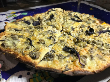 Обожаю пиццу, только она у меня получается с переменным успехом. По данному рецепту блюдо получилось очень удачным: тесто не жёсткое, по бортикам хрустит, а начинка!... Скажу честно, жульен никогда не ела и не готовила, а это так вкусно!