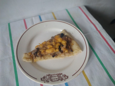 Но и готовится тоже быстро, что приятно (тесто сделала заранее, и пицца к обеду займёт не более 20-30 минут приготовления)