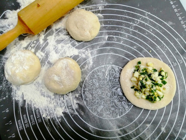 Выкладываем на каждую лепешку необходимое количество приготовленной начинки.