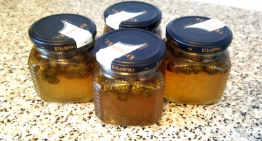 Это действительно уникальное "варенье" с терпким природным вкусом и ароматом. В качестве добавки в чай в холодное время года, уверена, окажется весьма кстати. Правда я решила добавить в баночки и сами шишки. Так сироп станет ещё более насыщенным, да и смотрится это очень эффектно.