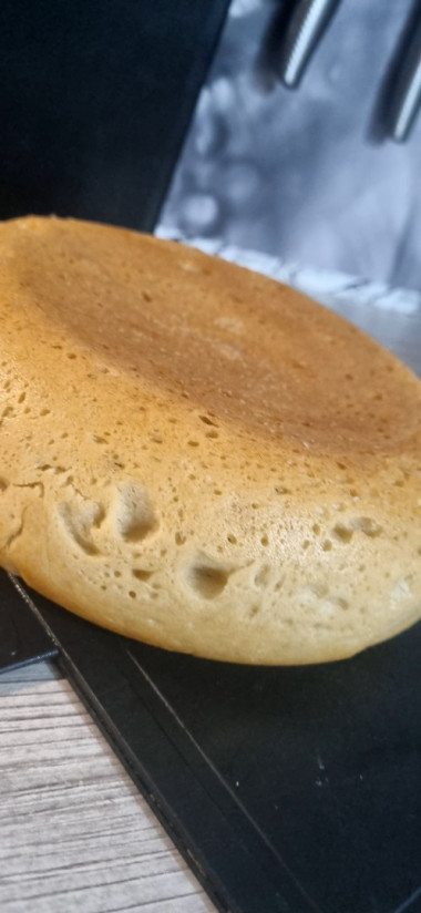 Это уже второй по рецепту. Жена критиковала, тесто неправильное, дрожжи не так разводишь...