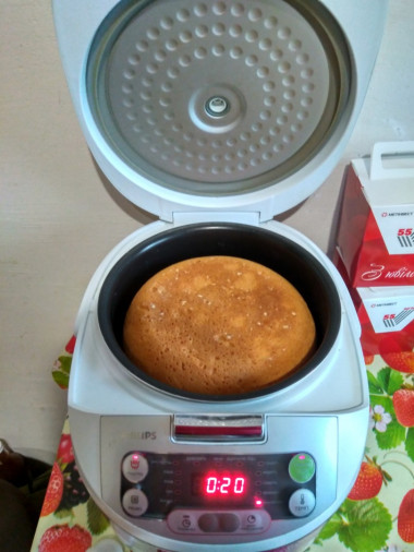 Выставите на мультиварке программу, подходящую для выпечки, у меня она так и называется "Выпечка". На вашей модели программа может называться по-другому. Время выставите 1 час (у меня 65 минут). Если выставляется температура, установите 160°С. Время указано приблизительное, ориентируйтесь на особенности работы вашей техники. Все о приготовлении в мультиварке читайте в отдельной статье. Ссылка в конце этого рецепта.