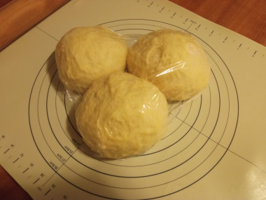 Поделите тесто на 3 части. У меня формы разные, поэтому и кусочки разные. Сформируйте колобки, дайте им полежать под пленкой. Недолго, минут 5-10.