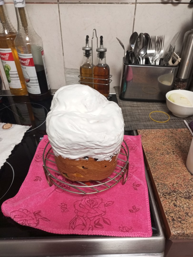 Чтобы кулич не подгорел сверху, обязательно накройте его фольгой после первых 10 минут выпечки, как указано в рецепте.