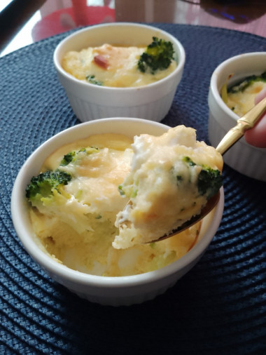 Сегодня было на удивление солнечное осеннее утро и так захотелось чего-то яркого на завтрак. В морозилке был пакет с брокколи, которая готовится очень быстро. От этого и отталкивалась. Нашла подходящий рецепт брокколи с яйцом и сыром в духовке. Всего три ингредиента, не считая соли, и полноценный завтрак готов. Брокколи я бросила в кипящую подсоленную воду, дождалась повторного закипания и варила две минуты. Для запекания взяла формочку для кекса, которую обильно смазала сливочным маслом. Хотелось прям очень вкусного завтрака) Оставшийся кусочек даже положила поверх будущей запеканки. Сыра взяла побольше. Запекала ровно 15 минут с верхним грилем. Получилось просто шикарно! Брокколи чуть похрустывала, сыр превратился в румяную корочку, а под ней нежное яичной суфле. И все такое сливочное и невероятно вкусное. В общем начало дня было удачным) Спасибо за рецепт!