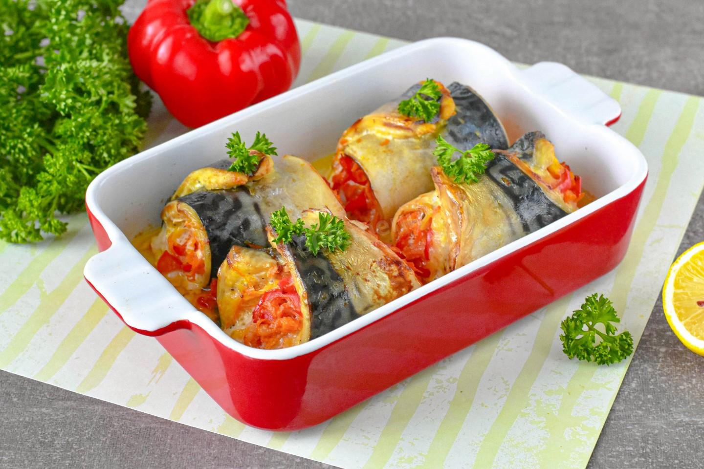 Скумбрия — популярная во всем мире рыба. Традиция фаршировать и заворачивать рыбу существует в кухнях многих приморских стран. Наш рецепт — это современная, адаптированная для домашней кухни интерпретация, где классическое сочетание рыбы и овощей дополнено расплавленным сыром для особой нежности.