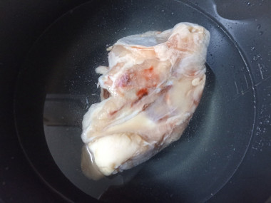 В кастрюле подходящего объема вскипятите воду, посолите по вкусу и положите в неё кусочки филе. Варите мясо примерно 10-15 минут. С выбором идеальной кастрюли поможет статья о кастрюлях, ссылка в конце рецепта.