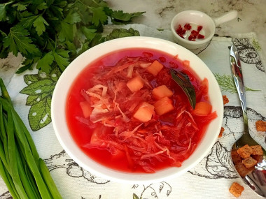 Борщ без мяса без зажарки со свеклой - рецепт, при котором сохраняются все полезные свойства продуктов, поэтому выбрала его для приготовления очередного обеда.