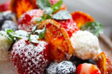Посыпать оставшимся сахаром сверху дольки апельсина.