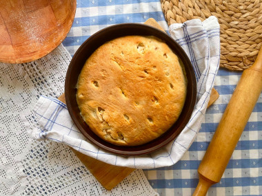 Правда, я не смазывала яйцом, так как муж не любит. Поначалу показалось, что верхушка будет твердой, как хлеб. Но он постоял под полотенцем минут 10, и сок от начинки распределился по всему пирогу, и он стал нежным и мягким.