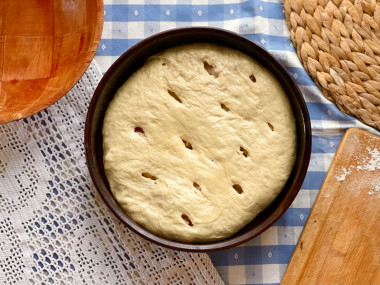 Смажьте пирог сверху взбитым желтком, чтобы после выпечки верх был золотистым.