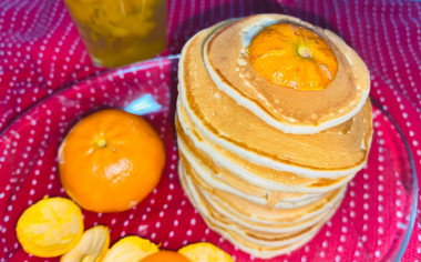 Панкейки без соды и разрыхлителя поела с мандариновым соком, к нему то я их и пекла. Спасибо.