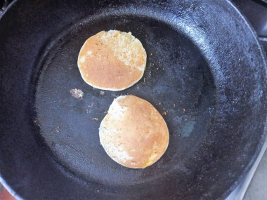 Переверните панкейк и выпекайте с другой стороны до румяности. Если размер сковороды позволяет, можно выпекать одновременно несколько блинчиков, что ускорит процесс. Пекутся панкейки быстро, примерно по одной минуте с каждой стороны.