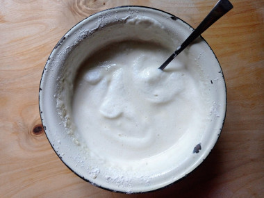 Тесто получается пышным, похожим на бисквитное. После приготовления теста выпекайте сразу, чтобы белки не успели осесть и тесто не потеряло свою пышность.