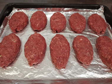Аккуратно поднимая края фарша, запечатайте начинку в котлету так, чтобы она вся осталась внутри. Выложите на противень швом вниз. Сформируйте остальные зразы, выкладывая на противень. Запекайте в духовке при 190 градусах около 40 минут. Время приготовления может измениться в зависимости от возможностей вашей духовки. Готовые зразы немного остудите и подавайте к столу. Приятного аппетита!