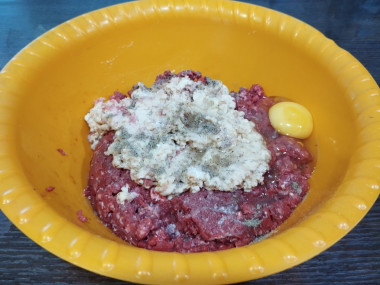 Для семейного ужина приготовила зразы из фарша с яйцом. Фарш у меня был из говядины, в который я добавила размоченные кусочки батона, яйцо, соль,перец и хорошо перемешала. Несколько раз фарш отбила для мягкости.