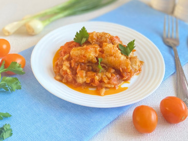 Готовила все по рецепту, вот только рыбу решила обжарить перед тушением.