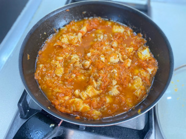 Шаг 11. Сколько тушить треску под томатным маринадом на сковороде?