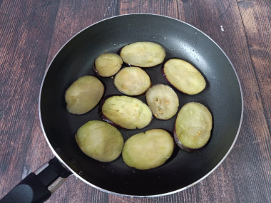 Слейте жидкость, которую выделили баклажаны. Обсушите их с помощью бумажных полотенцев. В сковороде разогрейте масло и обжаривайте частями ломтики баклажана по 2-3 минуты с каждой стороны. Обжаренные баклажаны складывайте сразу в стерилизованную банку, плотно утрамбовывая.
