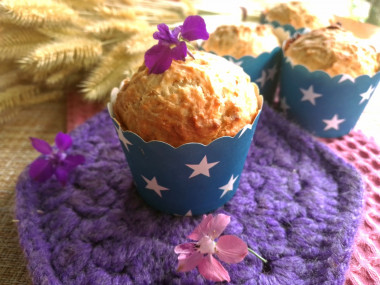 Ну очень вкусные и лёгкие в приготовлении кексики.Просто сказка.И не сильно сладкие,и всё что хочешь можно внутрь добавить,хоть варенье,хоть свежие фрукты.И присыпать можно чем угодно думаю.Даже с 1% кефиром получилось классно,зря переживала.Тоже делала с мандариновым джемом.