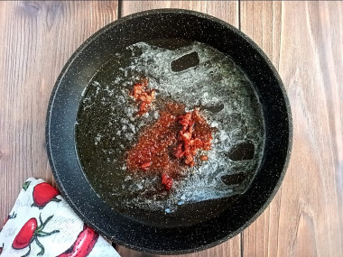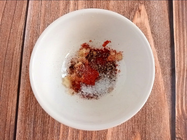 Чеснок очистите и пропустите через пресс. Вместо свежего чеснока можете взять ½ ч. л. сухого.