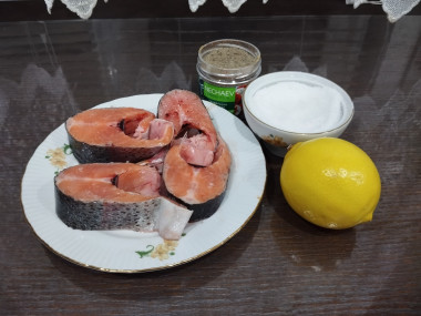 Калорийность продуктов: Стейк форели, Лимоны, Соль, Смесь перцев молотых, Оливковое масло