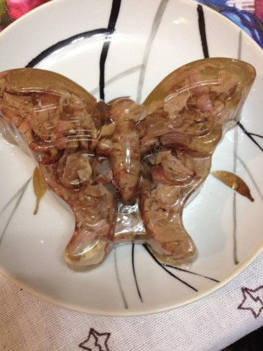 Обязательно кладу чеснок, а как же без него? Я еще ложку желатина добавила, чтобы холодец на столе не таял. А бабочка у тебя симпатичная. Любишь же ты соблюдать эстетический акцент блюда. Молодец