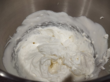 Сливки брала 33%,которые взбила с сахарной пудрой. Затем добавила маскарпоне и ещё раз недолго взбила. Крем получился нежный, и в тоже время отлично держал форму.